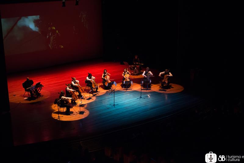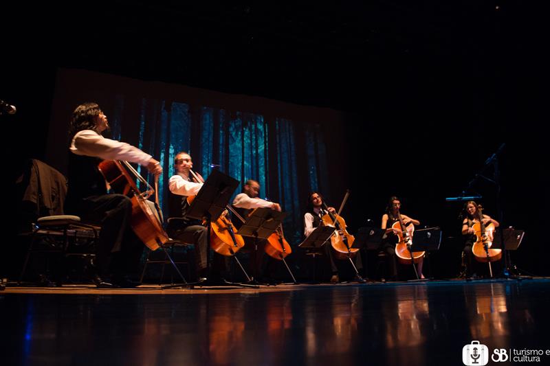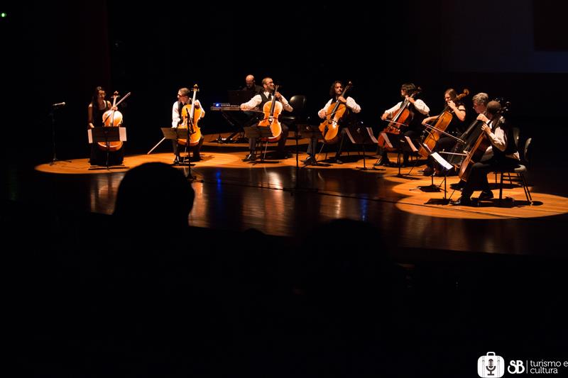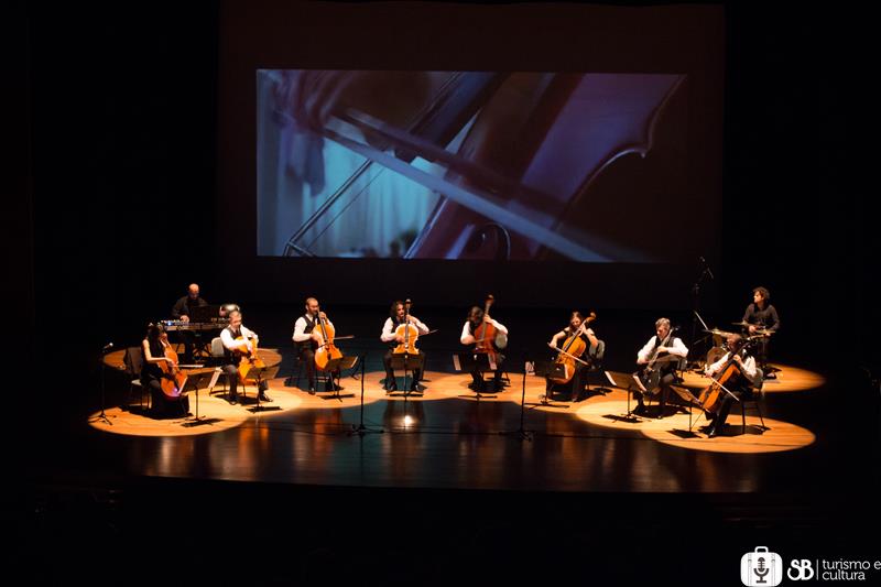"A música vira pura emoção na casa do cinema. E quando lá o violoncelo vai passear, tudo vira poema. Sente o tempo mais rápido passar, chora escondido, ri de gargalhar e até dá preguiça da cadeira levantar quando o filme enfim acabar. Venha ver e ouvir o melhor da sétima arte narrada por uma orquestra de violoncelos!"